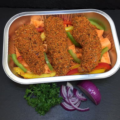 €6,95| /Oven ready tray of crispy chicken mixed with onions and peppers